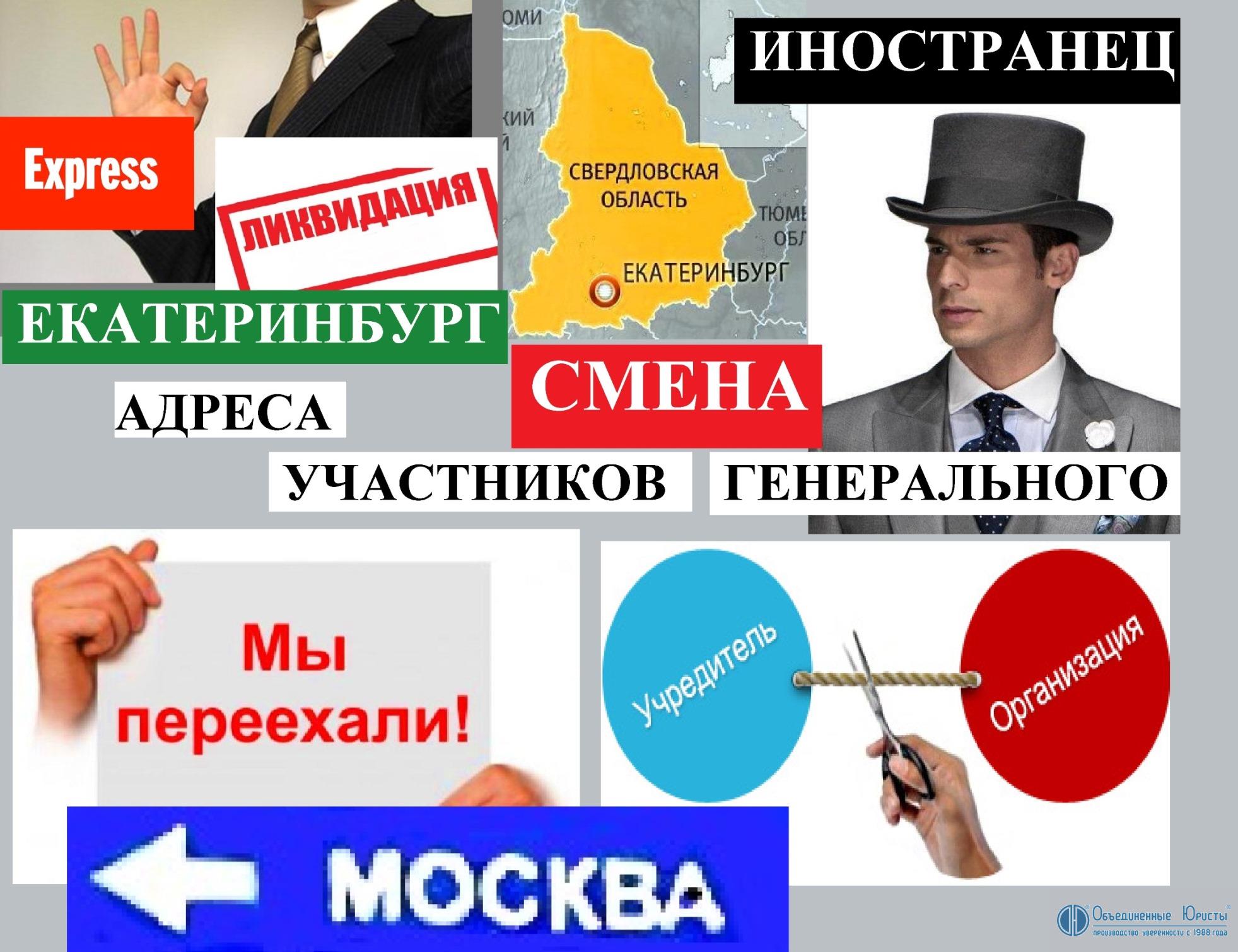 Экспресс-ликвидация предприятия в Екатеринбурге с предварительной сменой адреса на Москву, со сменой участников и генерального директора на иностранного гражданина.