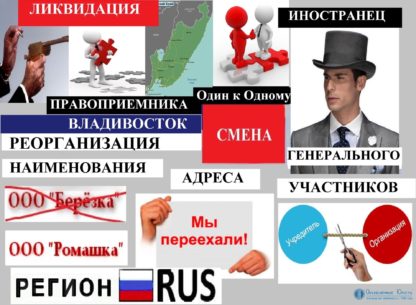 Услуга реорганизации предприятия в Москве по схеме «один к одному» с предварительной сменой адреса, наименования, участников и генерального директора, с последующей ликвидацией правопреемника. Новый участник и генеральный директор – ИН гражданин , новый адрес – регион РФ, является одной из наиболее надежных услуг по ликвидации юридического лица, единственным минусом можно назвать ее продолжительность, что после завершения процесса реорганизации в случае возникновения подозрений у налогового органа либо контрагентов к одному или нескольким из реорганизованных предприятий есть риск оспаривания ликвидации. Как показывает практика, случается это крайне редко, но исключить такую возможность мы не можем.