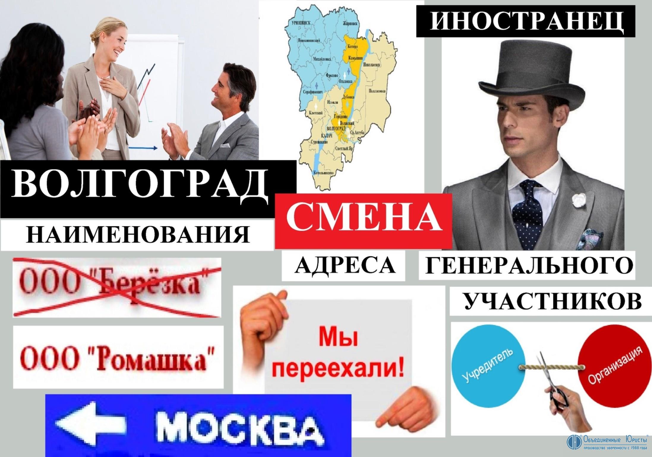Смена адреса, наименования, участников (учредителей, акционеров) и генерального директора в Волгограде – это надежный и быстрый способ прекращения правоотношений прежних участников и генерального директора с субъектом предпринимательской деятельности (предприятием, компанией, организацией, юридическим лицом, фирмой). Смена наименования и адреса – г. Москва служит дополнительной гарантией. Смена адреса, наименования, участников (учредителей, акционеров) и генерального директора является одним из доступных и эффективных способов альтернативной ликвидации.
