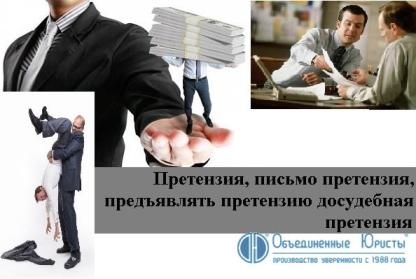 Наши юристы имеют большой опыт ведения претензионной работы и урегулирования споров в досудебном порядке. Обратившись к нам за помощью, Вы получаете квалифицированные услуги опытного юриста, который может предъявлять претензию. Письмо претензия будет направлена должнику в лучшем виде.